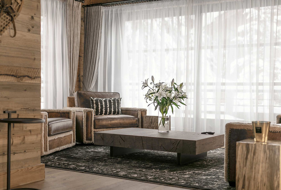 Conçu pour accueillir jusqu'à 15 personnes, le chalet comprend 2 chambres de maître communicantes avec cheminées ouvertes, des dressings et un jacuzzi, 2 suites avec coin salon et 4 chambres d’invités. Toutes les chambres sont équipées d’une salle de bains privative haut de gamme, TV, DVD, IPod Doc, minibar et Internet haut débit.
